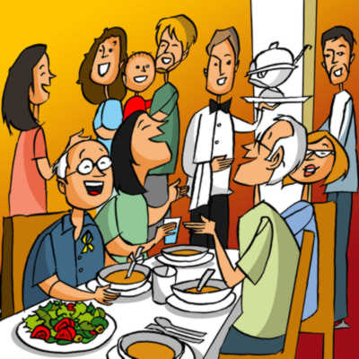 van dir «Anem al restaurant».